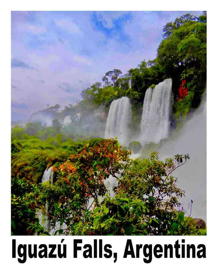 Iguazu Falls is on the Iguazu River on the border between Argentina and Brazil. It is the largest waterfall system in the world. The falls are are located in Iguazu National Park on the Argentine side and Iguaçu National Park on the Brazilian side.