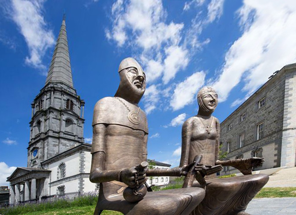 Christ Church Cathedral, also referred to as the Cathedral of The Holy Trinity. This church is Waterford’s principal Protestant place of worship. Constructed in 1779 on a site known for a cathedral dating back to 1096, the Cathedral is a centerpiece of Waterford. It was on this spot in 1170, where the legendary Norman king, Strongbow, married Aoife, daughter of Diarmait Mac Murchada, King of Leinster, thereby forming a great alliance.