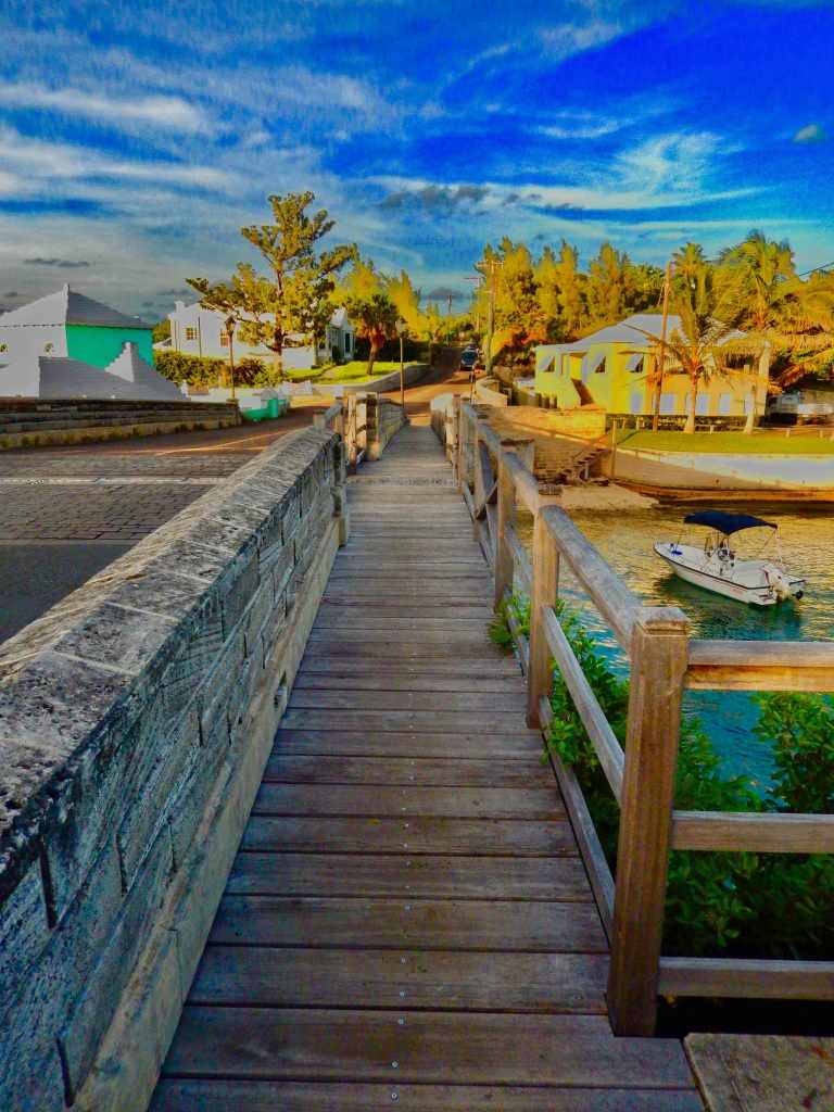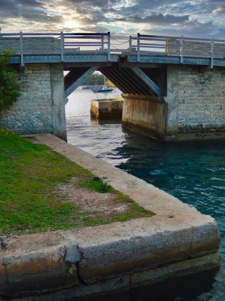 As part of a recent cruise we spent two days in Bermuda and struck out early to see all we could. The first day we made it by ferry to Hamilton, where we spent the morning, took a bus out to St. George for lunch and a ferry back to the dockyards. One of our goals was a visit to the village of Somerset and with an hour and a half to sunset we decided to check off Somerset and the Somerset drawbridge. The bridge was described in a guide as the world’s smallest drawbridge with an opening of only 18 inches (actually it was less than 12 inches) and seemed to make it an interesting goal.