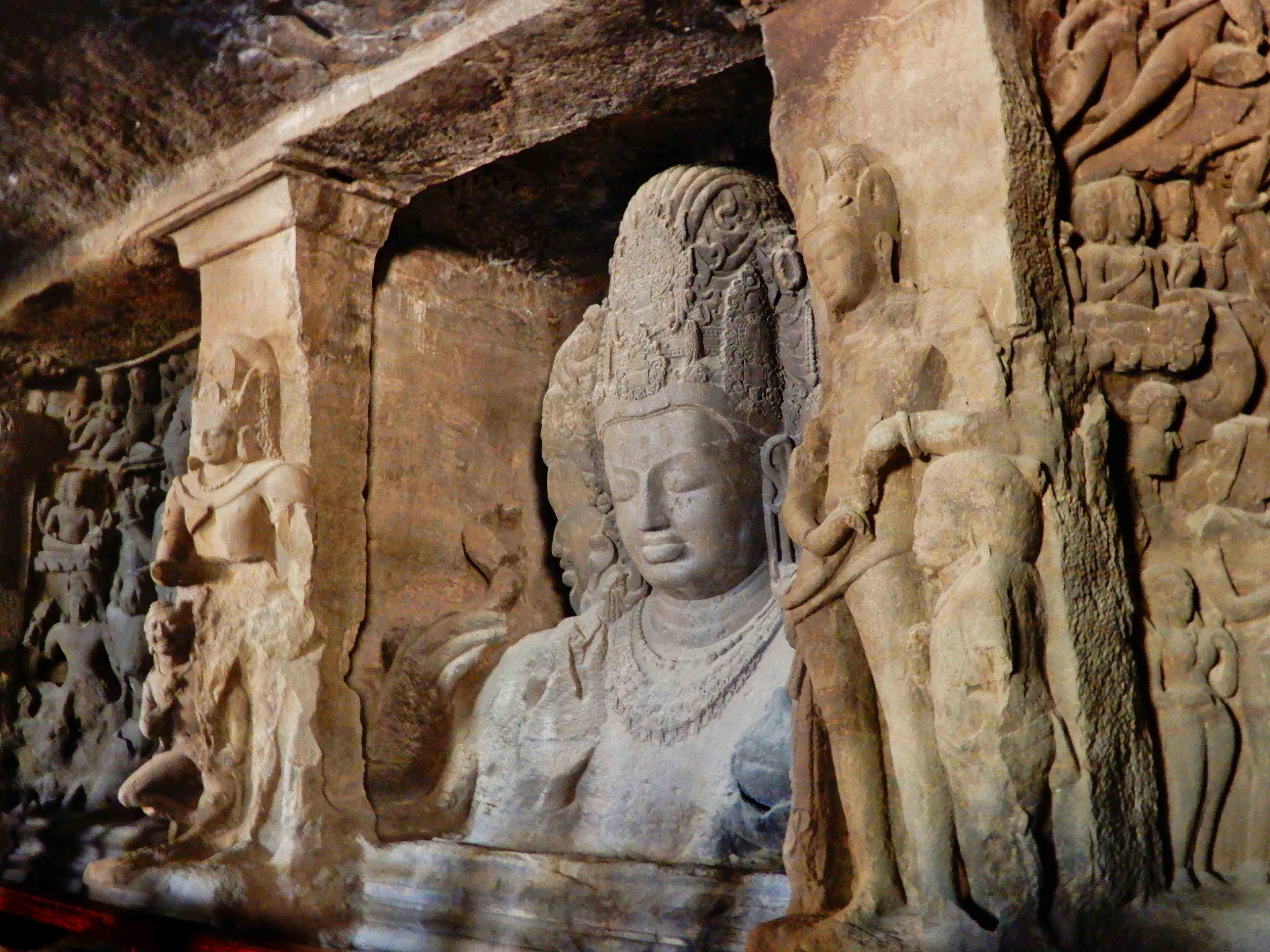 The Elephanta Caves are renowned for their rock-cut architecture and sculptures. The caves were carved out of solid basalt rock between the 5th and 8th centuries AD. The caves consist of five Hindu temples, with the main temple dedicated to Lord Shiva. The most famous sculpture in the caves is the Trimurti, a three-headed bust of Shiva representing his three aspects: the Creator, the Preserver, and the Destroyer.