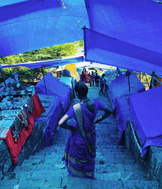 Walking Path Up To The Caves The walk up to the caves is a bit challenging, but it’s a great way to see the island and get some exercise. The path goes up concrete steps and is well-maintained and there are plenty of places to stop and rest along the way. There are also a number of craft and souvenir sellers stalls along the path. For those not able or willing to walk there are litters (hand carried chairs) to carry you up the trail. Pricing varies by temperature and demand but usually is surprisingly cheap.