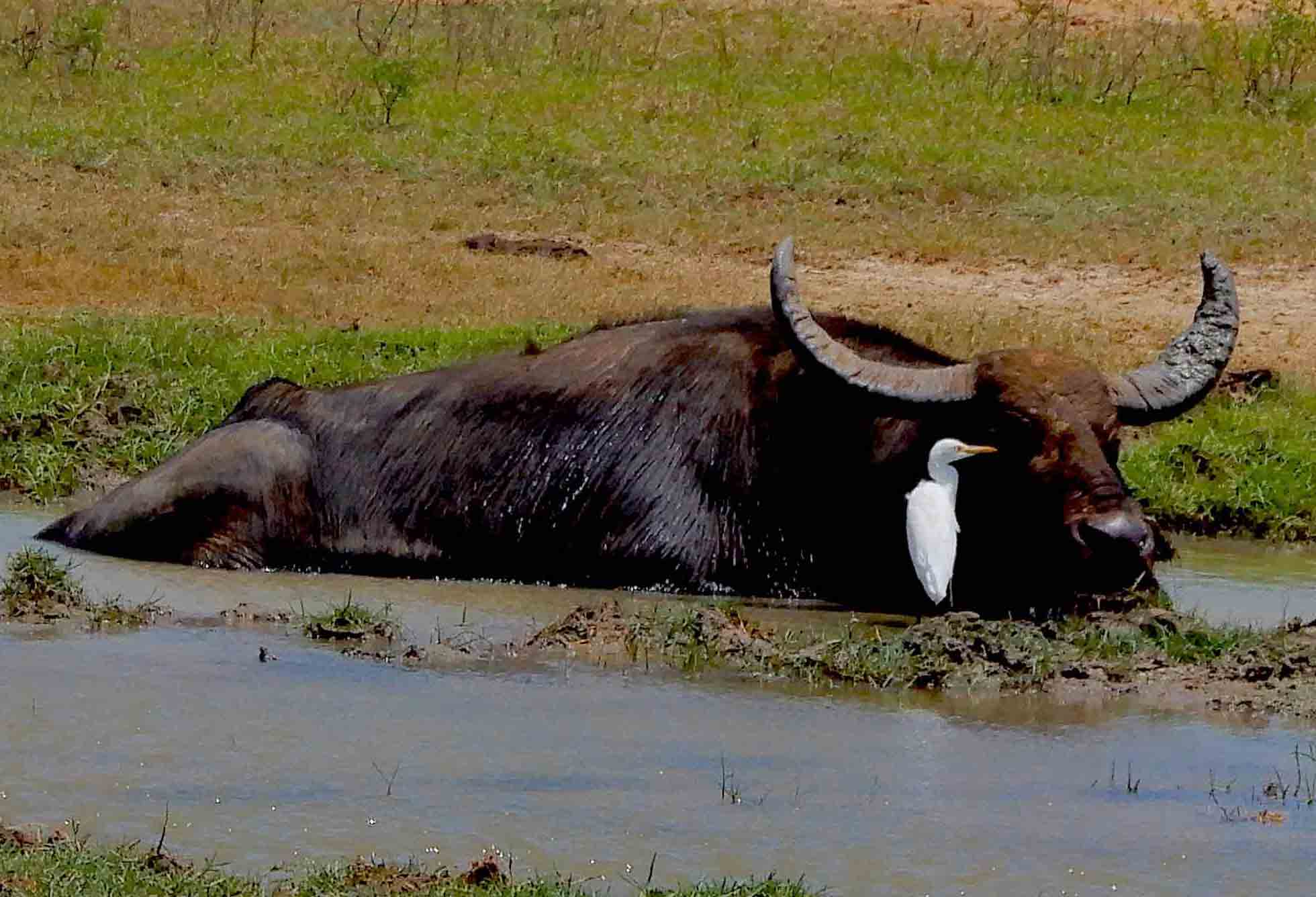 Water buffalo graze along streams, lakes and open grassland, tails flicking, jaws moving. Around them struts a small, white egret, with some riding on the cow’s. It’s a familiar sight not just in America, but around the world. It’s a cattle egret and it probably originated on the grasslands of Africa taking advantage of the insects buzzing around the animal herds stirring up the ground.