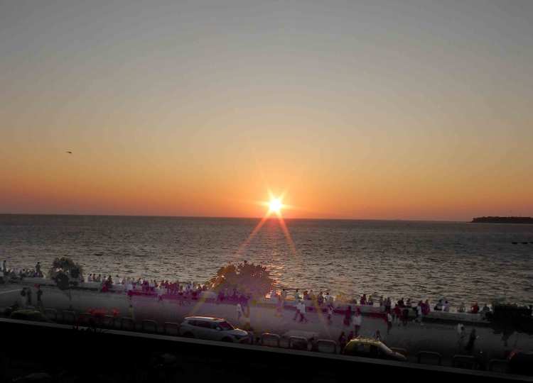 Perhaps the one advantage that smog has is that it produces strangely beautiful sunsets and the sunsets across the bay from Marine Drive in Mumbai were always spectacular.