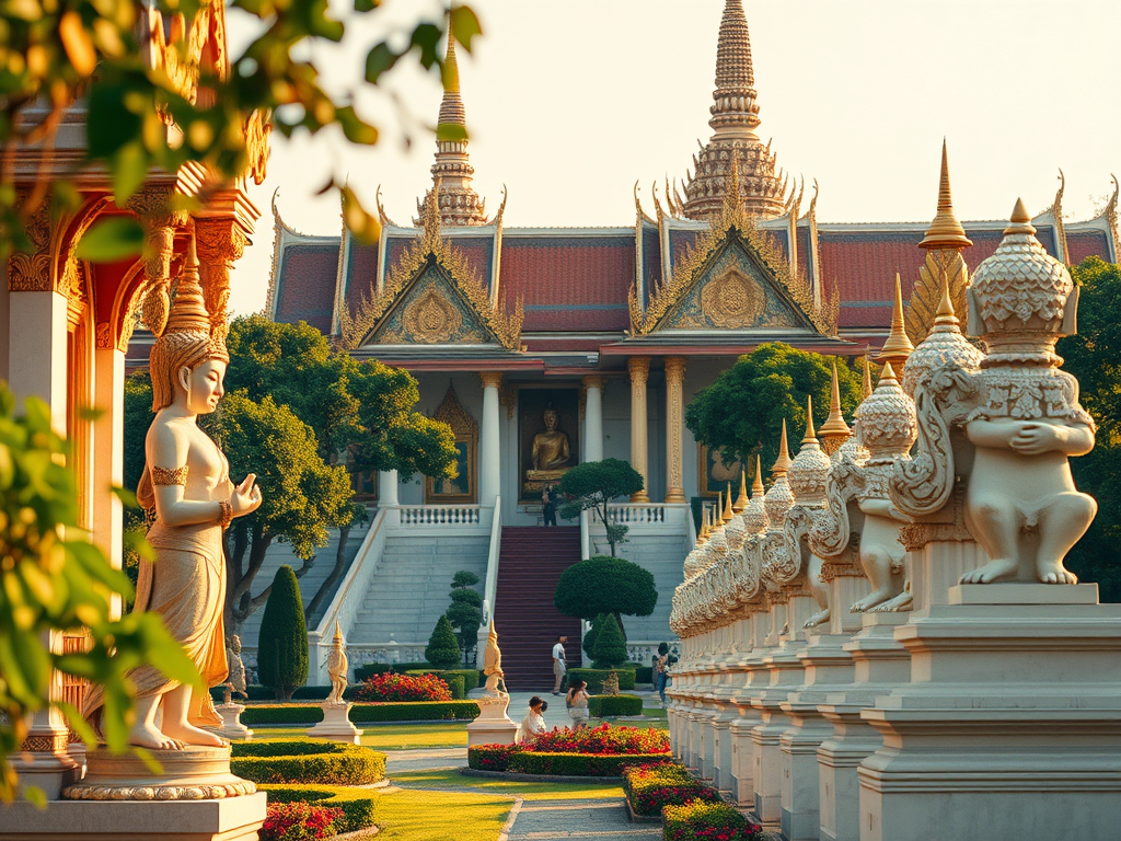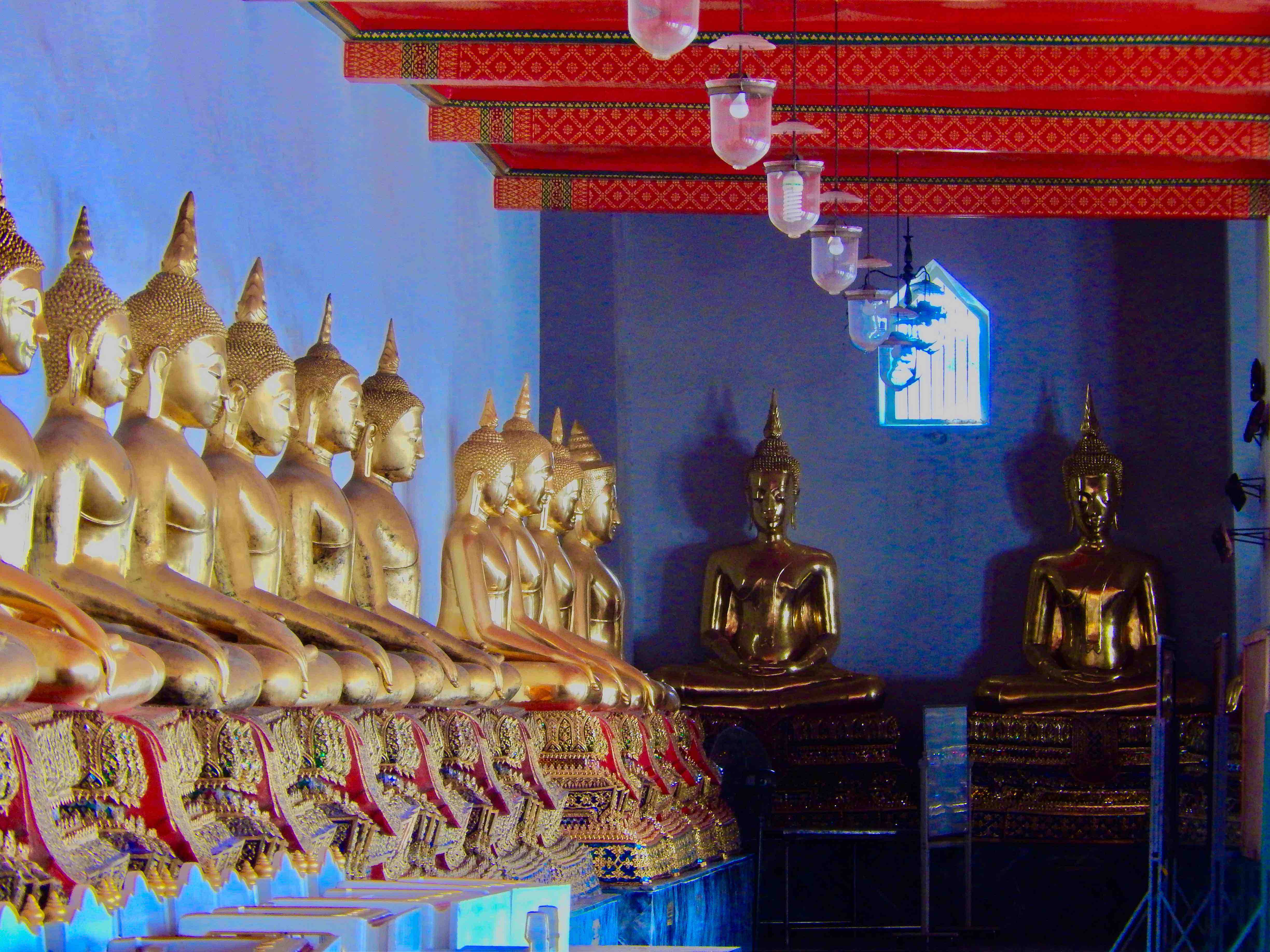 The Emerald Buddha (actually made of jade) is probably the most famous and it is on the grounds of the Grand Palace (established in 1782) so you can visit both at the same time. The grounds are huge and include a number of temples and palaces, magnificent statuary, works of art and jeweled walls. There are small admittance fees but you will be presented with a beautiful brochure once you have paid. The Grand Palace closes from time to time for events/ceremonies so this could affect your visit.