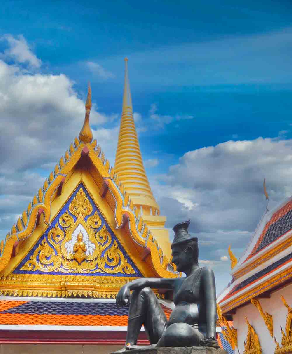 The Emerald Buddha (actually made of jade) is probably the most famous and it is on the grounds of the Grand Palace (established in 1782) so you can visit both at the same time. The grounds are huge and include a number of temples and palaces, magnificent statuary, works of art and jeweled walls. There are small admittance fees but you will be presented with a beautiful brochure once you have paid. The Grand Palace closes from time to time for events/ceremonies so this could affect your visit.
