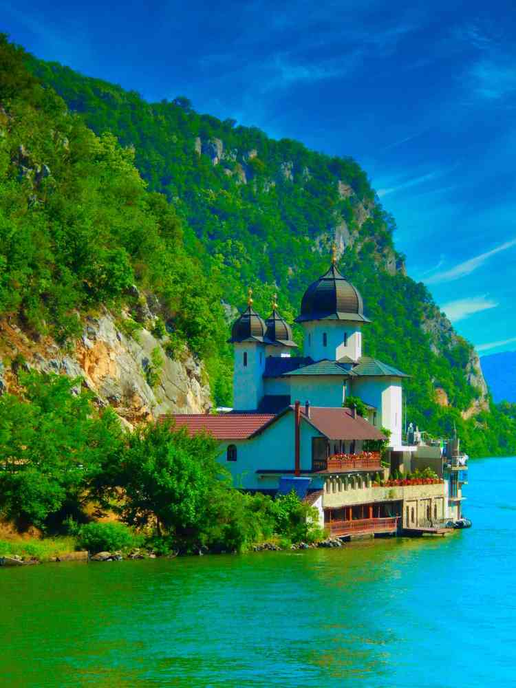 The Iron Gate, also known as the Đerdap Gorge, is situated between Romania and Serbia and is one of the most scenic stretches along the Danube river. The Iron Gate is a natural gorge formed by the Carpathian Mountains on the Romanian side and the Balkan Mountains on the Serbian side. It stretches for about 100 miles and offers stunning views of cliffs, caves, and and rock formations.