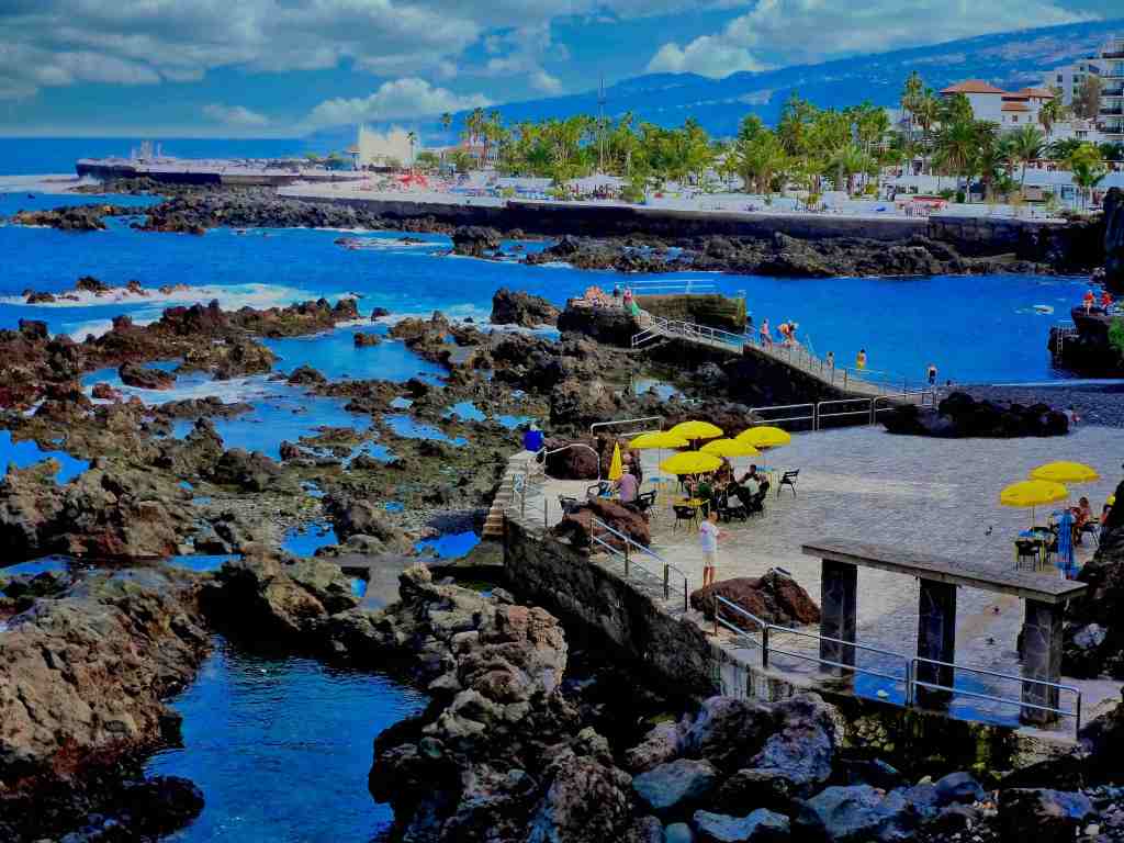 Just to the east of Playa del San Telmo is Costa Martiánez a very popular leisure, cultural, and gastronomic complex located in Puerto de la Cruzn. Known for its unique architecture, which includes pools, gardens, sculptures, and a variety of restaurants offering a wide range of culinary experiences. The complex features a series of seawater pools designed by architect César Manrique, offering guests the opportunity to enjoy swimming and sunbathing in a stunning oceanfront setting. In addition to the pools, there are a number of food venues and various cultural events held at Costa Martiánez throughout the year.