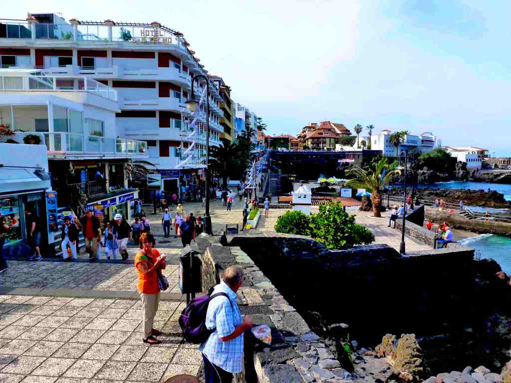 Tenerife is a popular vacation spot for many Europeans. The climate is near perfect, the water crystal clear, and it isn’t a particularly difficult place to get to. This Canary Island is also noted for its many beautiful beaches. One of the larger and more popular resort areas is Playa del San Telmo on the north central coast. It’s odd because this area has only a small sandy beach. Most of the jagged shore line is made up of volcanic rock formations. Most of the large sand beaches are located on the north west coast and on the south shore.