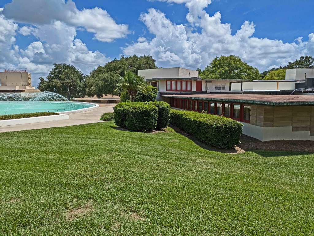 Some of the most iconic buildings designed by Wright at Florida Southern College include the Annie Pfeiffer Chapel, the Esplanade, and the Water Dome. The Annie Pfeiffer Chapel, with its spiraling roof and stained-glass windows, is considered one of Wright’s most significant religious structures. The Esplanade, a long, covered walkway, connects many of the buildings on campus and features a series of arches and columns. The Water Dome, a circular building with a reflecting pool, was originally intended as a library but now serves as an administrative building.