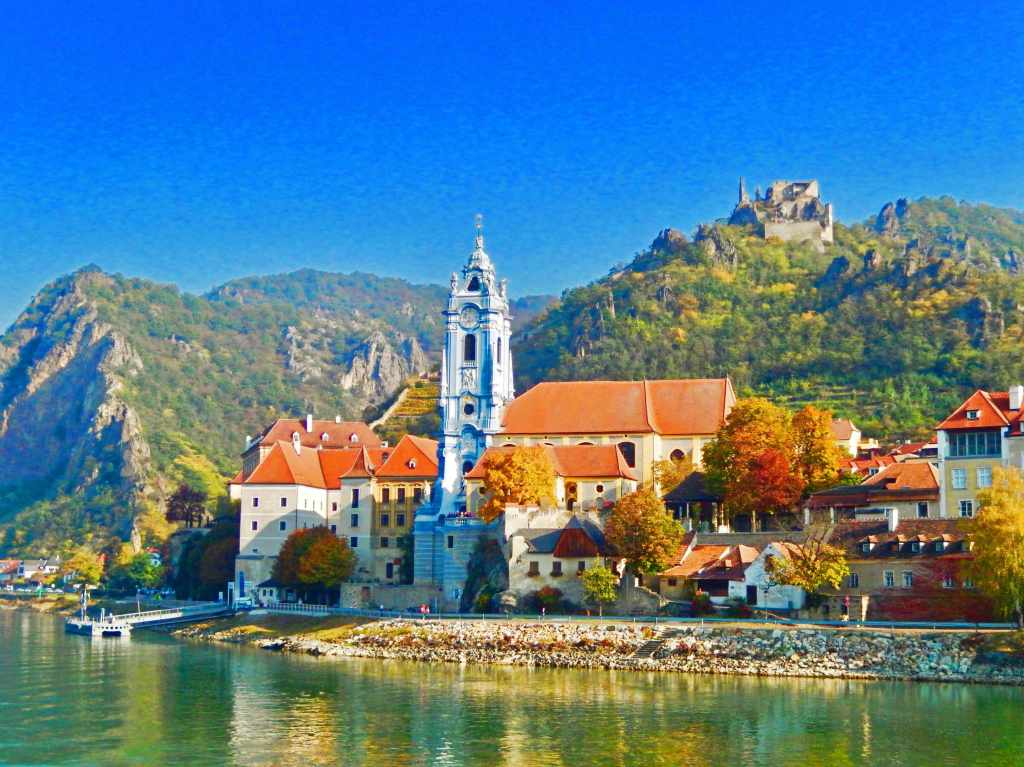 The town of Dürnstein on the Danube in Austria sits below the ruins of Trifels Castle where King Richard I was held prisoner.