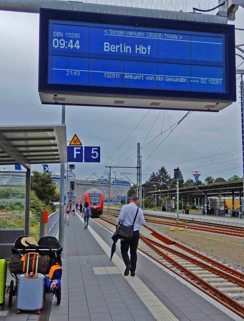 The train station at Warnemünde is the last stop on a number of train routes and the station is just two blocks from the cruise
