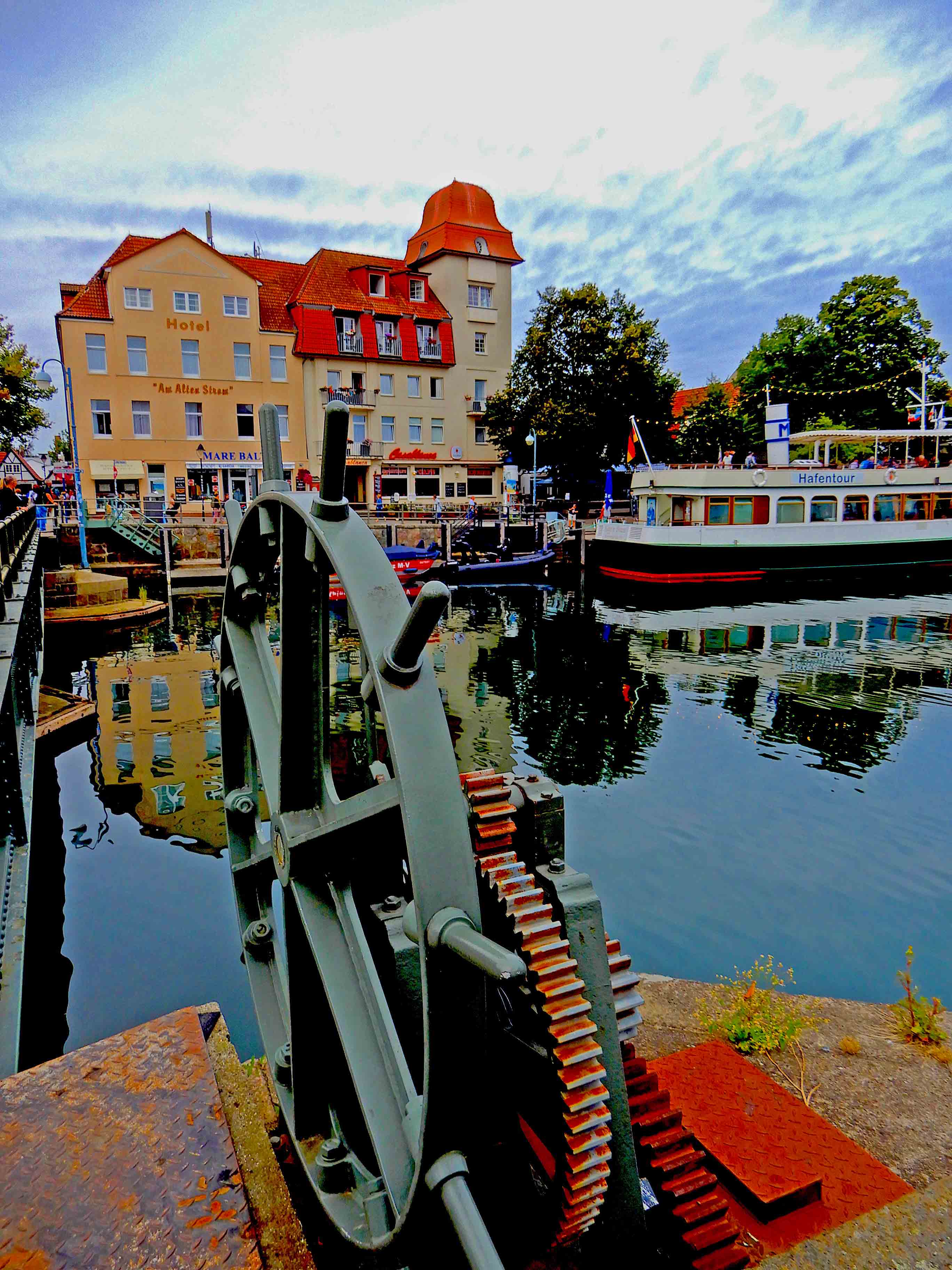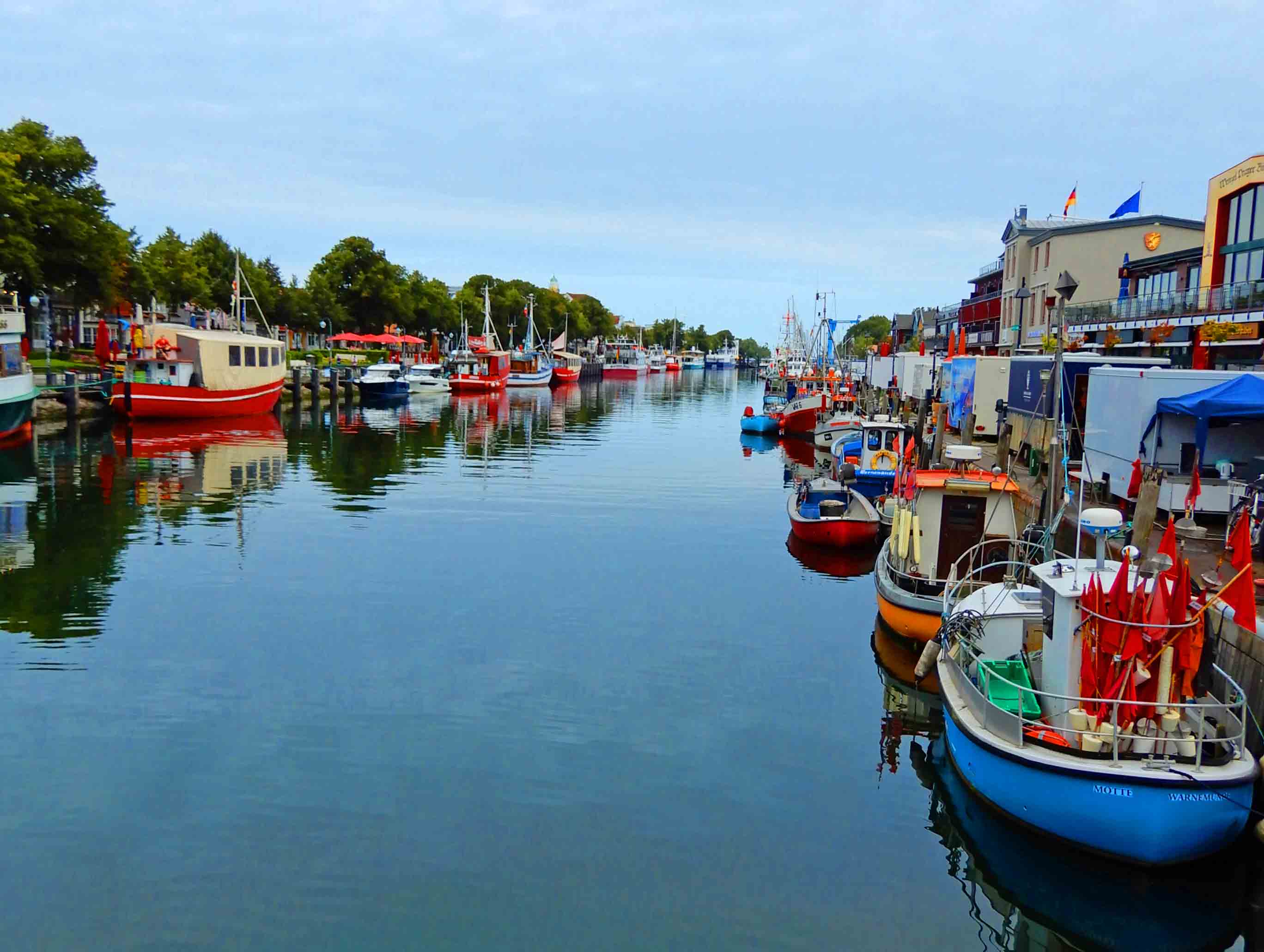 The Alter Strom is the center of Warnemünde featuring a canal filled with boats and lined by restaurants and quant shops.
