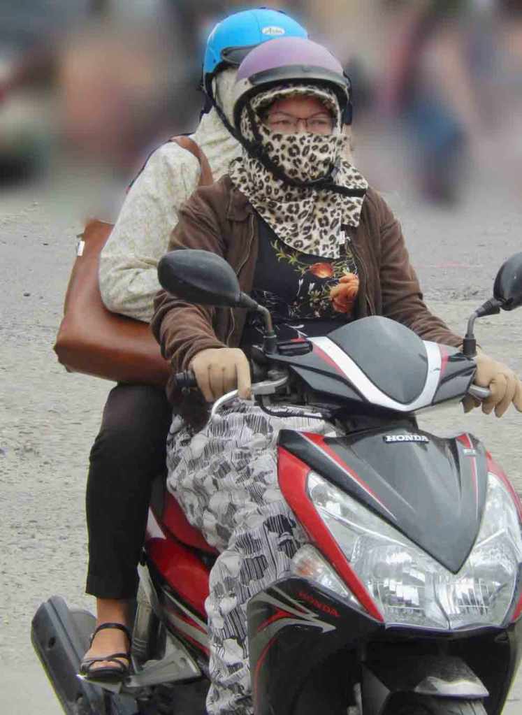 On visiting Vietnam everywhere we saw women wearing outfits that suggested they were cold. Considering temps in the 80’s and 90’s it seemed extremely odd. Trying to figure out what was going on we asked a local man and were told that Vietnamese women considered having a light complexion made them more attractive and they were covering up to protect themselves from the Sun.
