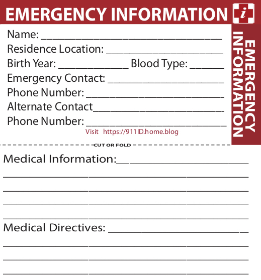 The Intentional Travelers have for years offered an inexpensive Emergency Identification Card in either hard copy form or as a downloadable document in our shop on Etsy. At this time we have given up the Etsy shop but are planning on integrating the Etsy into a download shop on The Intentional Traveler.