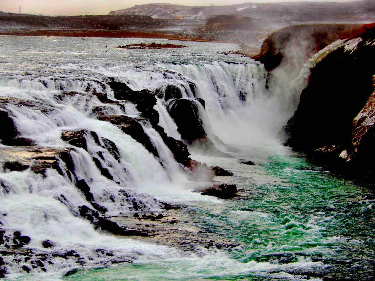Iceland is a rugged island nation featuring geysers, volcanos and lots of waterfalls. Featured here is Gullfoss Waterfall a favorite on the Golden Circle tour.