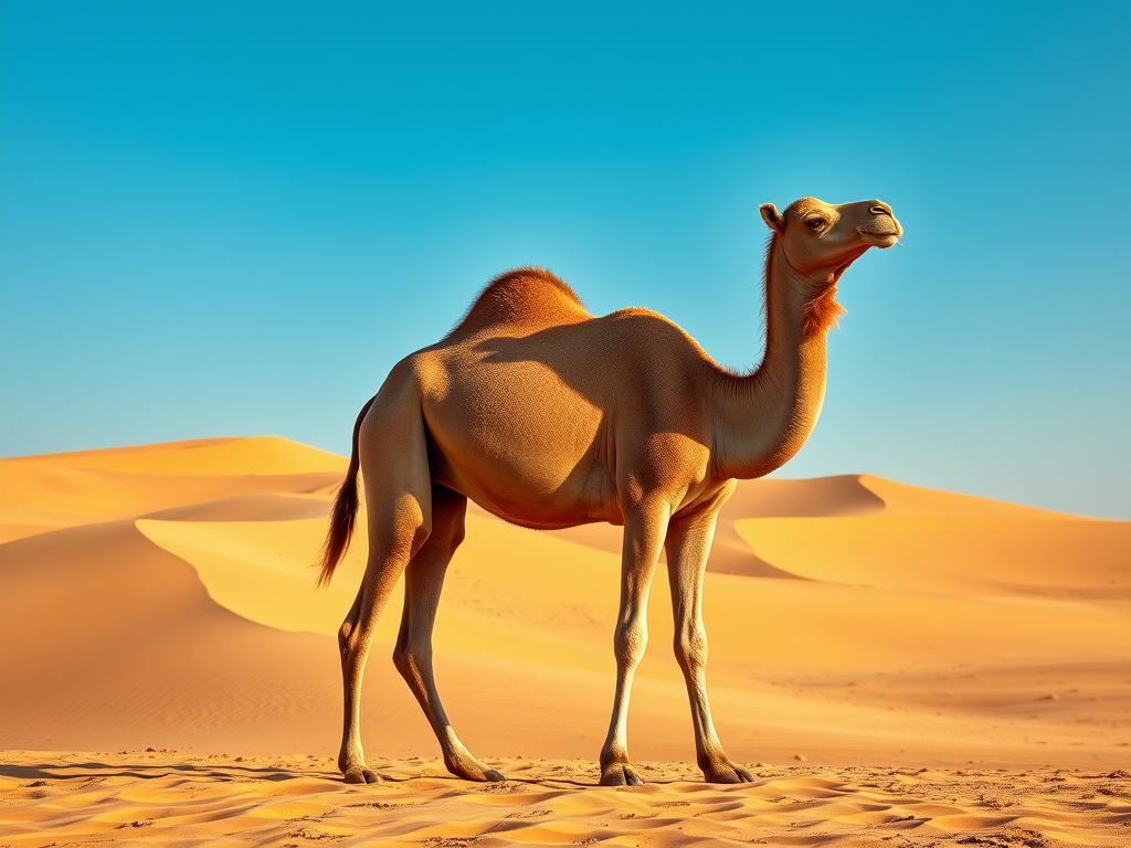Often called a camel the dromedary (Camelus dromedarius), also known as the dromedary camel and one-humped camel, is a large species of the genus Camelus with one hump on its back. It is the tallest of the three camel species; adult males stand up to 7 ft 10 in at the shoulder, while females are up to 6 ft 3 in tall. Males typically weigh between 880 and 1,520 pounds, and females weigh between 660 and 1,190 pounds. The dromedary’s distinctive features include its long, curved neck, narrow chest, a single hump and long hairs on the throat, shoulders and hump.