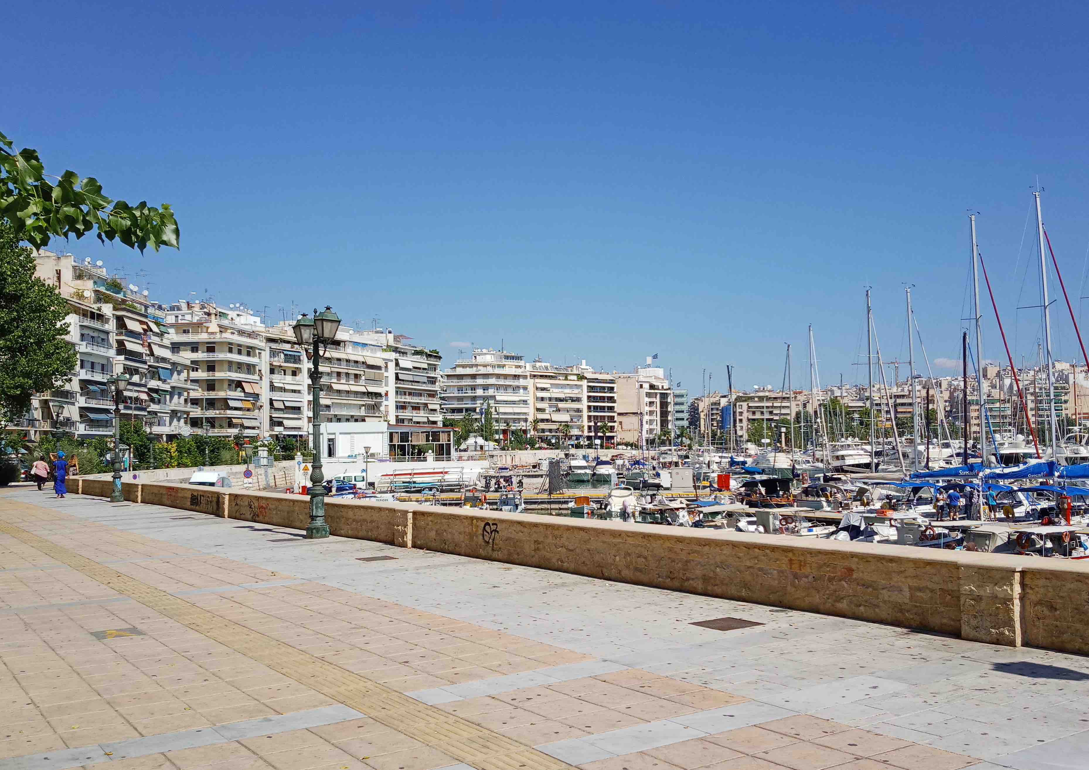 Every time we’re there we stay at the Lilia Hotel (☆☆☆☆+ $$), a small hotel on a side street that includes a light breakfast each morning. Located only three blocks from the port/marina of Pasalimani, and only a 15-minute walk from the hotel to the Dimotiko Theatro metro station for a short trip into Athens. In addition around Pasalimani there’s a wide promenade offering a great selection of nice restaurants. Also the Sklavenitis Supermarket (Leof. Ir. Politechniou 84, Pireas 185 36) for snacks, food and wine is 4 blocks away.