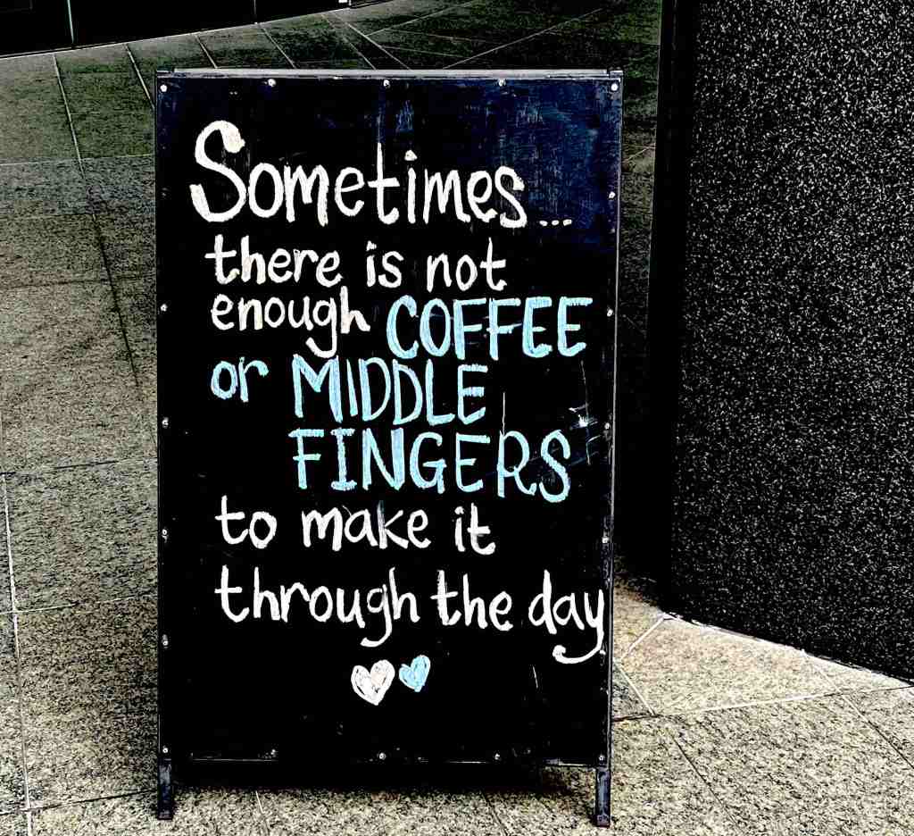 Sometime it’s not the image but the sentiment. This sandwich board was outside a Sydney, Australia coffee shop. We don’t know about you but we’re having more and more of those kind of days.