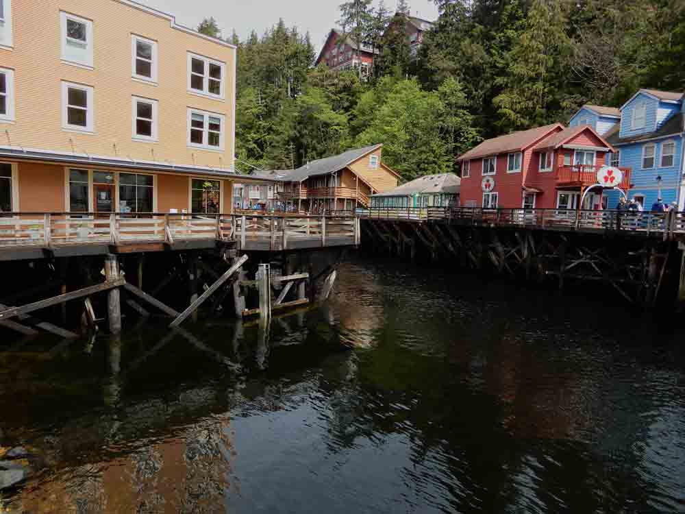 Directly behind Creek Street was Ketchikan Creek tumbling down a hillside and along the creek was a path called “Married Man Trail” as it served as a discreet route for men visiting the red-light district instead of openly walking into the front doors of the “sporting houses”.