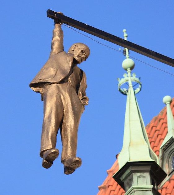 The “Man Hanging Out” sculpture, created by Czech artist David Černý, is suspended two stories above the street. This striking artwork features a representation of psychoanalyst Sigmund Freud suspended by one hand from a pole. There are a number of interpretations, including themes of existentialism and humor.
