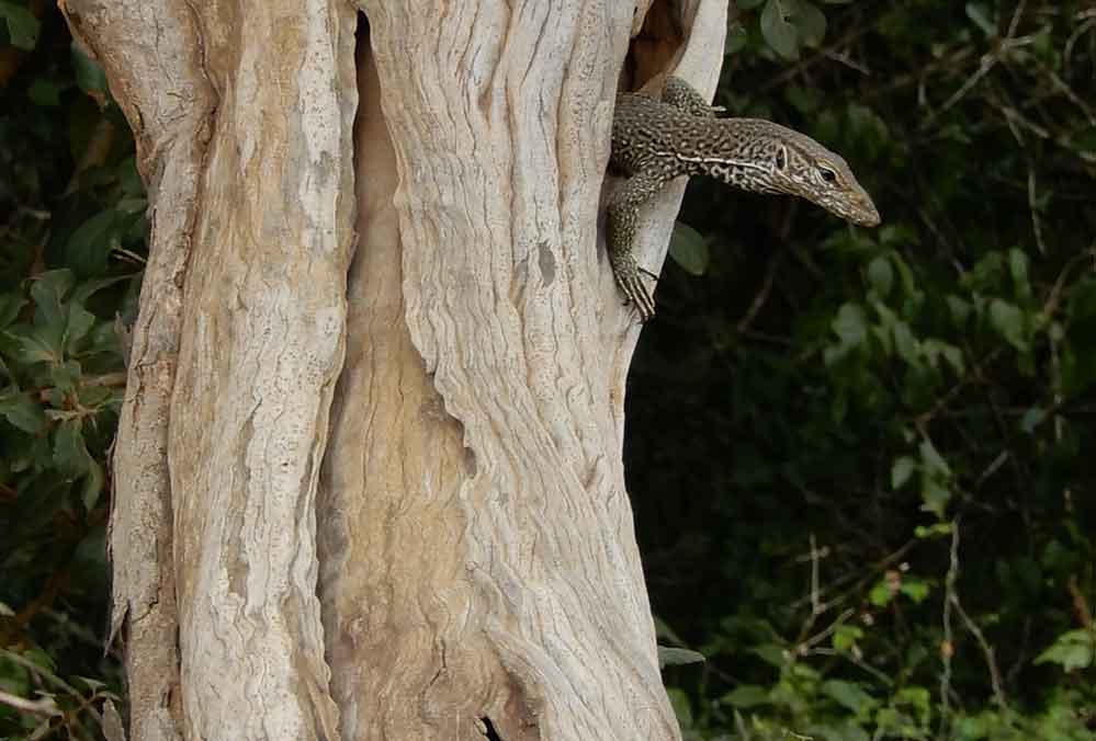 Sri Lanka is home to three species of monitor lizard: the Bengal Monitor (Varanus bengalensis), a mainly terrestrial lizard found in dry forests and grasslands, the larger, semi-aquatic Water Monitor (Varanus salvator salvator) which lives near water and can grow to be one of the largest lizards in the world and the Spotted Tree Monitor (Varanus scalaris), The Water Monitor from Sri Lanka holds the world record for the longest lizard, measuring up to over 9 feet.