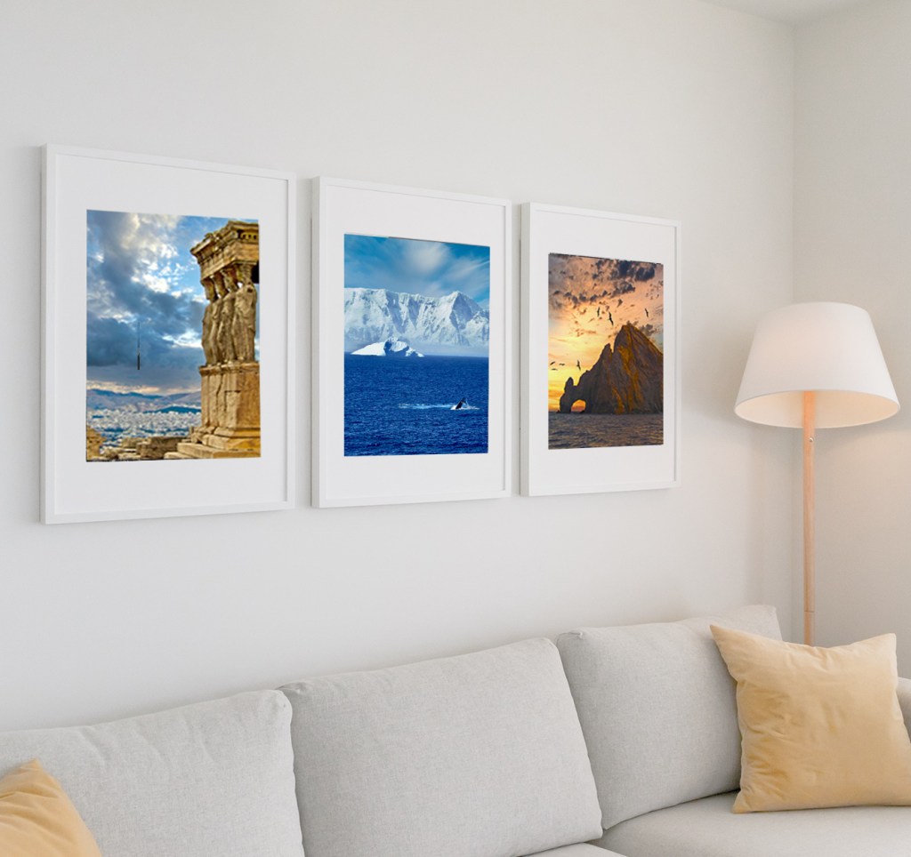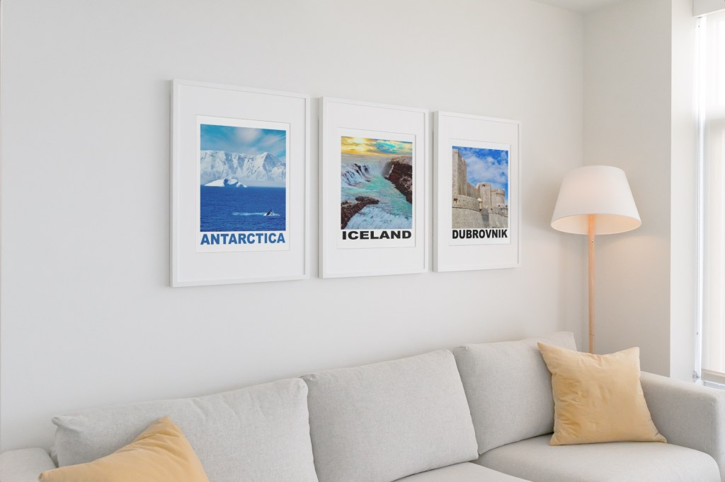 “What a great idea. We love the idea of decorating with travel memories. Picked out several of our travel pictures and had them printed locally (Walmart). The prints were beautiful and really look great on our wall. Liked the idea that each print was from our travels.” Sue M