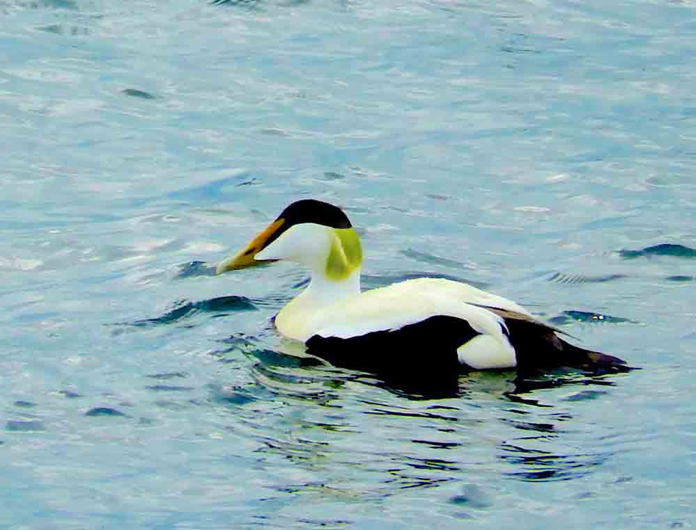 The photograph here is of a male Common Eider, the largest duck in the northern hemisphere. This one was found in Norway.