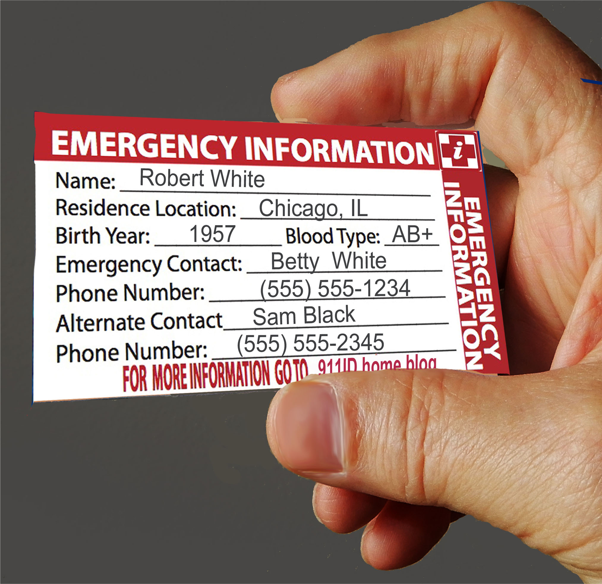 Download our free Emergency Travel ID Card in a pdf file that can be filled out, printed and carried with you. Each sheet will produce four 2-sided fold-over cards.