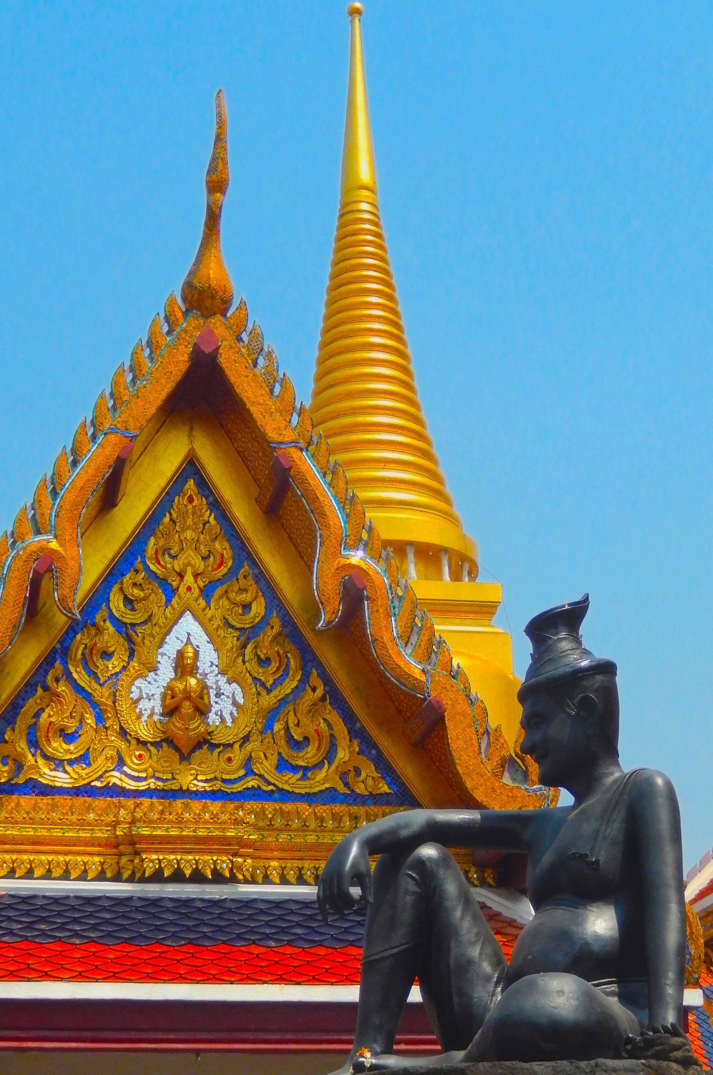 The Emerald Buddha (actually made of jade) is probably the most famous and it is on the grounds of the Grand Palace (established in 1782) so you can visit both at the same time. The grounds are huge and include a number of temples and palaces, magnificent statuary, works of art and jeweled walls. There are small admittance fees but you can claim a beautiful brochure once you have paid. The Grand Palace closes from time to time for events/ceremonies so this could affect your visit.