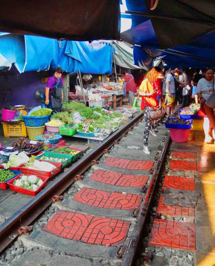 One recommendation not to miss is the Maeklong Railway Market about 45 miles outside Bangkok and is the most unique market in Asia. The trains run down a stretch of track right through the market with shops on the tracks. It features vendors (mostly food) on and next to both sides of the tracks. They display their products and when the train is coming they drop awnings and quickly pull everything back until the train passes. Afterwards, it all goes back by the tracks. This process happens seven times a day but we’d recommend visiting early in the morning when the temperatures and smells are both lower.