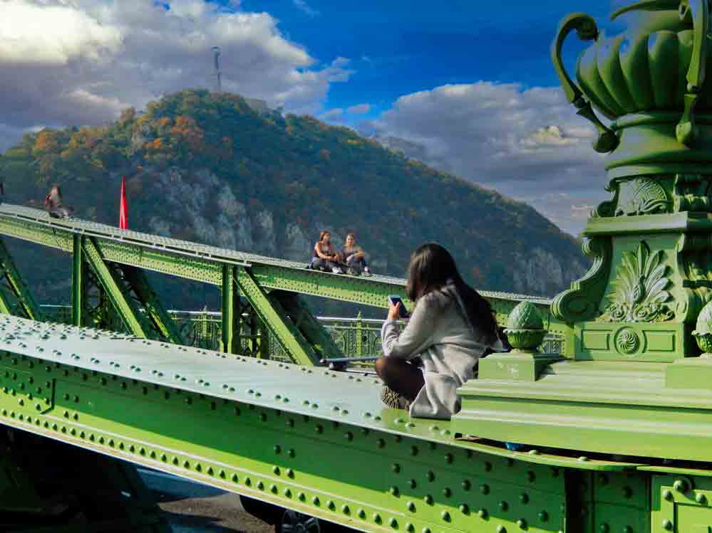 It’s odd how attracted people in Europe are to climbing and sitting on bridges. Photographed on a warm spring day in Budapest at the Szabadsag Bridge, but we’ve seen similar scenes from Amsterdam to Paris to Prague.