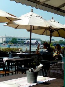 restaurant is on the Chao Praya River across from Wat Arun (Temple of Dawn) with a deck featuring tables, umbrellas and great views. To find it, go down Tha Tian Alley towards the river from Maha Rat Road, south of the Naval Welfare Department.