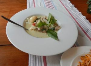 staff is friendly and efficient and, while not inexpensive, the food is very good. The afternoon we visited, we had curried beef, Pad Thai, grilled chicken skewers with rice and cold Thai beer and were very pleased with our selections. Based on other meals we ate in Thailand we believe that their offerings are toned down some to appeal to western tastes.